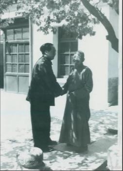 圖為毛澤東同老朋友、民主人士柳亞子在北平重逢。