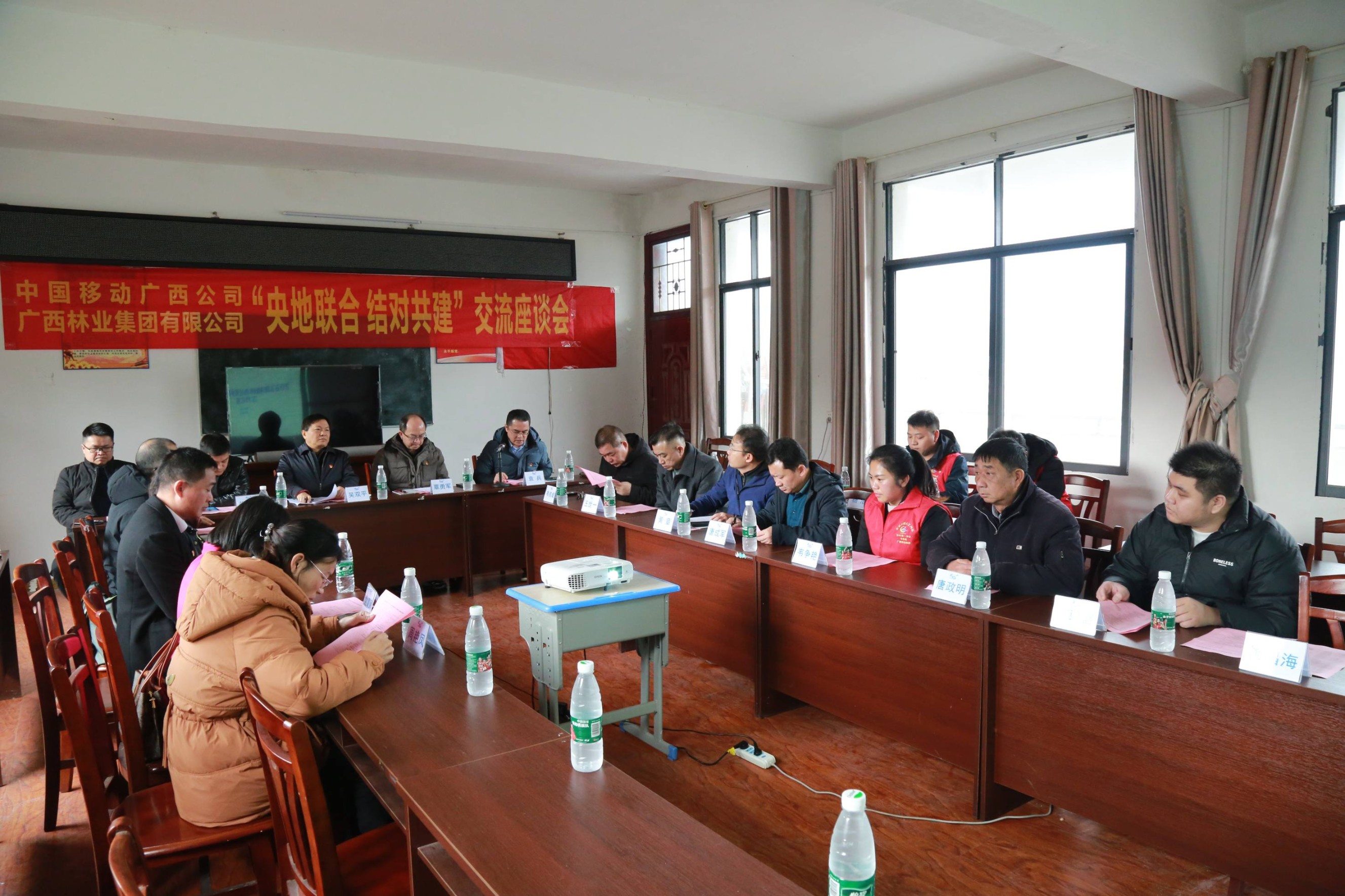 為進(jìn)一步貫徹落實(shí)習(xí)近平總書記關(guān)于“三農(nóng)”工作的重要論述,貫徹國務(wù)院國資委關(guān)于深化央企與地方國企鄉(xiāng)村振興合作的要求,1月31日,廣西林業(yè)集團(tuán)有限公司(以下簡稱廣林集團(tuán))與中國移動(dòng)廣西公司在桂林全州開展“央地聯(lián)合結(jié)對(duì)共建”黨建活動(dòng)并召開共建交流會(huì)。自治區(qū)國資委機(jī)關(guān)黨委專職副書記、鄉(xiāng)村振興辦公室副主任吳雙平出席會(huì)議并作指導(dǎo)講話,廣林集團(tuán)黨委副書記、董事、工會(huì)主席覃勇軍出席會(huì)議并作交流發(fā)言,中國移動(dòng)廣西公司計(jì)劃技術(shù)部(鄉(xiāng)村振興辦公室)二級(jí)正資深經(jīng)理袁兵主持會(huì)議。