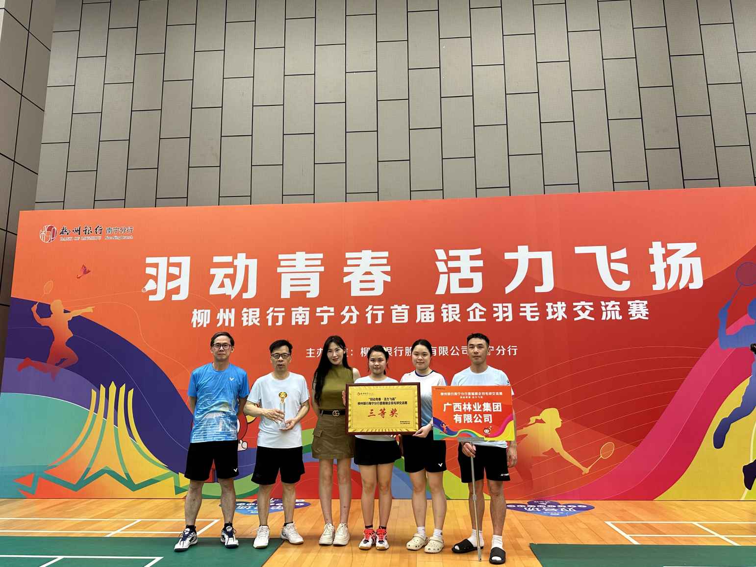 近日,柳州銀行南寧分行首屆銀企羽毛球交流賽圓滿落幕,廣林集團(tuán)作為特邀單位參加了本次比賽。集團(tuán)羽毛球隊(duì)在高手如云的參賽隊(duì)伍中最終斬獲第四名,榮獲團(tuán)體三等獎的佳績。