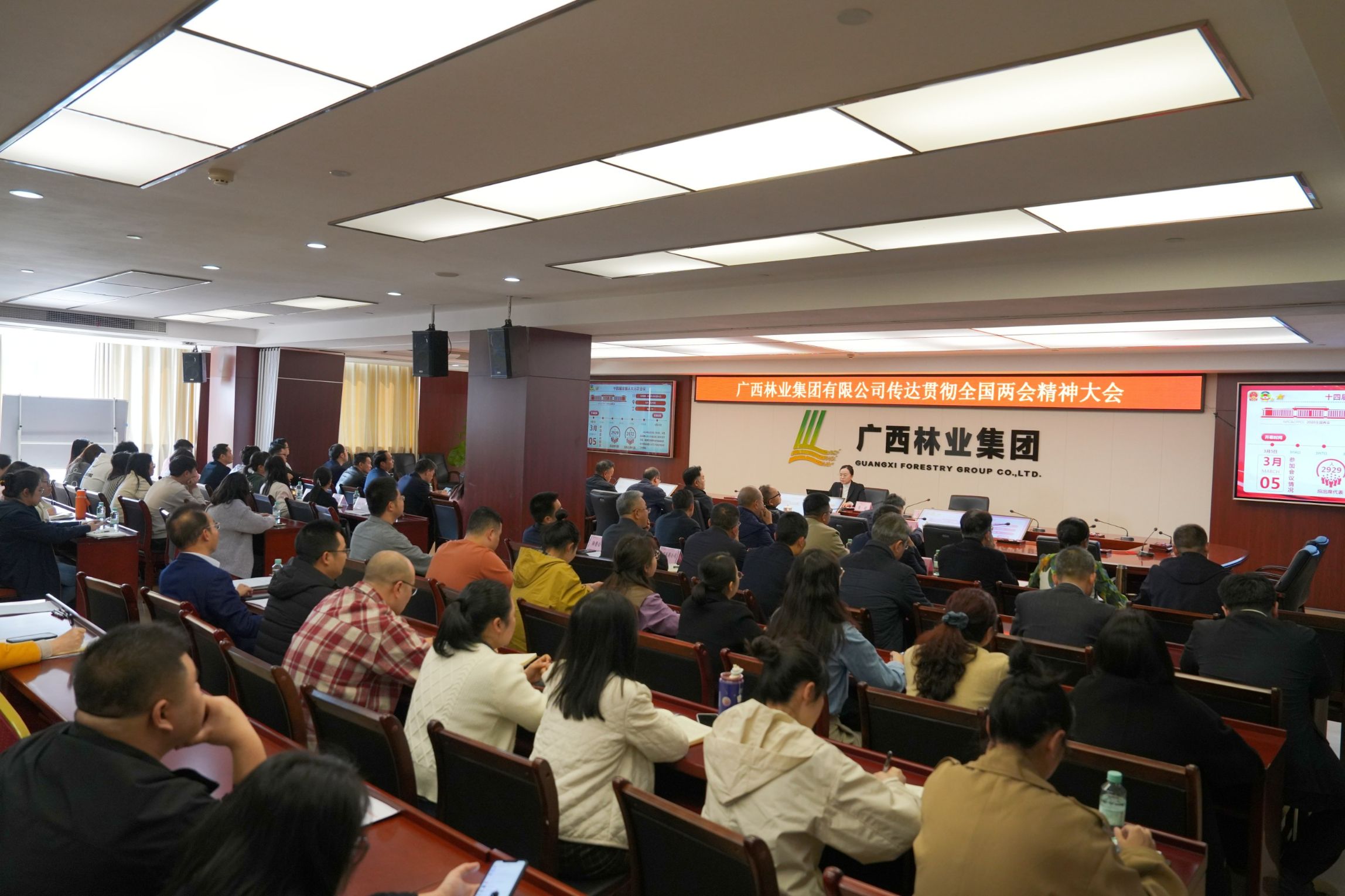 3月20日,廣林集團(tuán)黨委召開傳達(dá)貫徹全國(guó) “兩會(huì)”精神大會(huì)。廣林集團(tuán)黨委書記、董事長(zhǎng)羅勇主持會(huì)議并講話,全國(guó)人大代表、集團(tuán)副總經(jīng)理黃超傳達(dá)“兩會(huì)”重要講話精神,集團(tuán)在家領(lǐng)導(dǎo)班子成員出席會(huì)議。