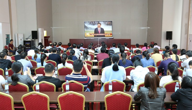 與會人員認(rèn)真收看實(shí)況直播